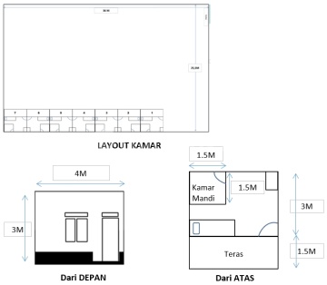 SPESIFIKASI TANAH & BANGUNAN Luas Tanah 917 M2 (SHM) Panjang x Lebar : 36Mx25.5M Luas Bangunan: 7 Kamar Kos, KM dalam. -@4Mx4,5Mx3,5M (PxLxT). -Kamar 4Mx4,5M. -Kamar tidur 4MX3M -Teras 4Mx 1,5M. -Kamar Mandi 1,5Mx1,5M. -Bangunan siap untuk 2 It. -Rangka atap baja ringan. -Atap genteng metal. -Plafon Triplek + cat Dinding Bata Merah. Finish Aci + Cat Jet Pump terpasang. Torrant 1000L terpasang. Meteran listrik per Kamar Pintu Gerbang Sliding Pagar keliling: -Mayoritas Bata merah -Sebagian kecil Hebel -Finish Aci + Cat -Tinggi 2M -Diatas dinding dipasang kawat duri