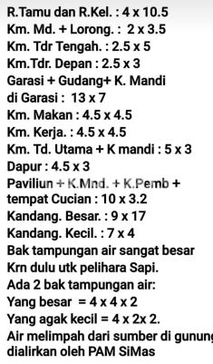 Rumah Dijual Salatiga Akses langsung pinggir jalan besar Spesifikasi: Luas tanah: 5.237 m² Harga: Rp 1,2 juta / m² Legalitas: SHM Sudah ditalud (dinding penahan keliling) Bangunan & Fasilitas: - Listrik 1.300 watt - Rumah utama: 3 KT, 2 KM, ruang tamu, keluarga, kerja, dapur & makan - Garasi 4 mobil + Gudang + KM - Paviliun + kamar ART + KM + tempat cuci - Kandang sapi & pedèt - 2 bak air (besar & kecil), sumber air pegunungan Kebun produktif: Pisang, durian, petai, nangka, alpukat, kelengkeng, kayu surèn Potensi besar untuk: - Agrowisata / Ekowisata - Kafe / Resto alam - Villa pribadi - Investasi properti Happy shopping Have a nice day Just for serious only
