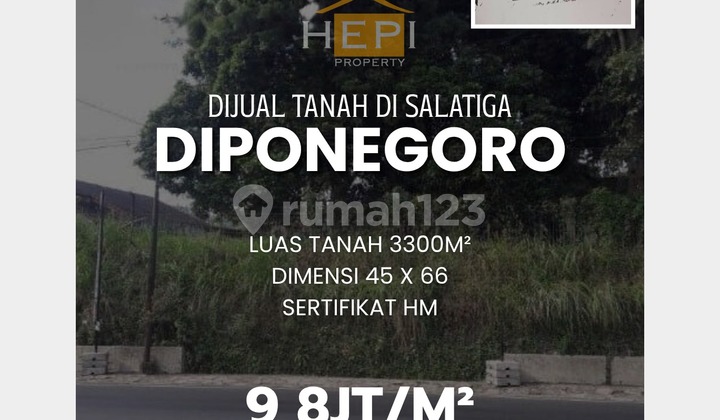Dijual Tanah di Jl Diponegoro Salatiga Luas Tanah 3300m² Dimensi 45 x 66 Sertifikat HM Harga 9,8 juta/meter Dekat UKSW Dekat Tol