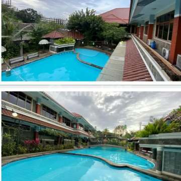 DIJUAL HOTEL PONDOK SERRATA ( bintang 3 ) , srondol , semarang atas : luas tanah 4.638 m luas bangunan 3.881 m depan 2 lantai belakang 4 lantai hm & hgb 42 kamar 5 meeting room kolam renang restaurant bintang 3 masih aktif HARGA 110 M nego info lengkap dan survey lokasi hubungi Adrianto