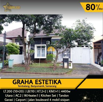 Disewakan rumah dekat dengan kampus UNDIP Tembalang di Graha Estetika Lt : 200 (10 x 20) Lb : 110 Kt : 2+2 Km : 1+1 Hadap : Utara 4400 watt 2 AC Water Heater Kitchen set Tandon Garasi Carport Jalan boulevard sisipan 4 mobil 3 menit dari RS Hermina (1,5km) 4 menit dari UNDIP (1,8km) 5 menit dari Transmart Setiabudi (2,1km) 7 menit dari Pintu Tol Banyumanik (2,8km)