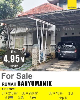 Rumah di Banyumanik. Cek segera rumah 2 lantai yang nyaman ini, dijual dengan pemandangan indah yang menambah nilai estetika di lingkungan hunian. Rumah ini berada di wilayah strategis serta menghadirkan lingkungan fasilitas yang lengkap, cocok untuk Anda yang menginginkan hunian aman. Spesifikasi Utama Properti: - Kamar Tidur: 6 - Kamar Mandi: 3 - Sertifikat: SHM - Sertifikat Hak Milik - Daya Listrik: 2200 W - Arah Bangunan: Menghadap Utara - Kondisi Perabotan: Semi Furnished Dilengkapi dengan: - Keamanan 24 jam. - Tempat Jemuran. Fitur unggulan: - Siap Huni. - Bebas Banjir. - Bisa KPR. - Lokasi dipusat kota. - Sejuk. - Cocok Untuk Investasi. - Properti Bisa Nego. - Lokasi Strategis. Terletak di Banyumanik, rumah ini memberikan kemudahan akses ke berbagai fasilitas menarik. Dengan harga Rp. 4.950.000.xxx, anda bisa memiliki hunian eksklusif yang sudah siap huni dan bersertifikat SHM - Sertifikat Hak Milik. Ambil kesempatan untuk menikmati investasi di kawasan Banyumanik yang nyaman ini! Kontak segera untuk informasi lebih lanjut!