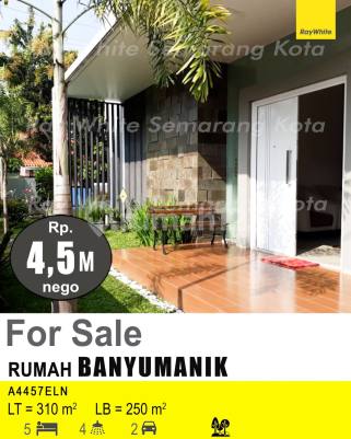 Rumah hook 1 lantai di Banyumanik, Semarang. For sale rumah hook di wilayah yang tenang. Properti 1 lantai ini berada di lingkungan strategis. Rinciannya adalah sebagai berikut: - Kamar Tidur: 5 - Kamar Mandi: 4 - Sertifikat: SHM - Sertifikat Hak Milik - Daya Listrik: 7600 W - Hadap: Selatan - Kondisi Perabotan: Furnished Tidak hanya itu, properti ini layak untuk anda dapatkan karena: - Siap Huni. - Bebas Banjir. - Full Furnished. - Bisa KPR. - Sejuk. - Cocok Untuk Investasi. - Properti Bisa Nego. - Lokasi Strategis. Properti ini telah lengkap dengan fasilitas: - Keamanan 24 jam. - Tempat Jemuran. - Taman. Keberadaan rumah ini terjangkau, hanya selangkah menuju berbagai fasilitas utama dan menarik. Hanya Rp. 4.500.000.xxx, anda bisa langsung dapatkan rumah premium di daerah Banyumanik ini.