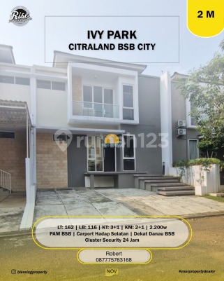 Dijual Rumah untuk Keluarga Exclusive di cluster Ivy Park, Citraland BSB City Semarang. SHM LT. 162 m2 LB. 116 m2 (2 lantai) 3 +1 Kamar Tidur 2 +1 KM Balconi kamar atas Taman belakang luas PAM 2200 Watt Hadap Selatan Dekat danau BSB One gate security cluster. Dekat pusat perbelanjaan (Uptown mall) Dekat universitas