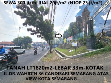 Tanah Hook HM LT 1820 hook Raya Wahidin Candisari View Kota Semarang Lebar +/-33m, Kotak Ada rangka bangunan yang masih kokoh, bisa di renovasi sesuai kebutuhan usaha. Area Parkir depan belakang luas Sewa 300 juta/tahun atau 1 M/5 tahun Jual 20 juta/m2 (NJOP saat ini 2025, 23 juta/m2) Cocok untuk segala usaha : >> Cafe tempat santai, relax, intertain dll >> Rumah makan View Kota Semarang >> Biliard >> Lounge >> Lapangan Padel + Café View Kota >> Hotel >> Dll Silahkan yang berminat bisa WA 0819xxxxxxxx