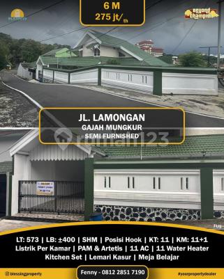 Rumah Besar Bagus Siap Huni di Jl Lamongan Gajahmungkur LT 573 LB 400 SHM Posisi HOOK KT 11 KM 11+1 Listrik Per Kamar PAM & Artetis 11 AC 11 water heater kitchen set lemari kasur meja belajar Universitas Universitas Dian Nuswantoro (UDINUS) - 7 menit (3 km) Universitas Diponegoro (UNDIP) Pleburan - 10 menit (4 km) BINUS University Semarang - 8 menit (3 km) Universitas Negeri Semarang (UNNES) - 25 menit (10 km) Akses Tol Gerbang Tol Gayamsari - 12 menit (5 km) Gerbang Tol Kaligawe - 15 menit (6 km) Gerbang Tol Krapyak - 15 menit (6 km) Pusat Perbelanjaan Ciputra Mall (Simpang Lima) - 5 menit (2 km) Paragon City Mall - 8 menit (3 km) DP Mall Semarang - 8 menit (3 km) Queen City Mall - 8 menit (3 km) Transportasi Stasiun Poncol Semarang - 12 menit (5 km) Stasiun Tawang Semarang - 12 menit (5 km) Bandara Internasional Jenderal Ahmad Yani - 20 menit (8 km)