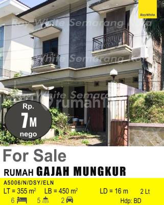 Dijual Rumah Di Papandayan Semarang. Mewah. Daerah elite. Dekat fasum cocok utk hunian / kantor. Cek segera rumah 2 lantai yang modern ini, dijual dengan pemandangan indah yang menambah nilai estetika di lingkungan hunian. Rumah ini berada di wilayah Lokasi dipusat kota serta menawarkan lingkungan fasilitas yang lengkap, cocok untuk Anda yang menginginkan hunian strategis. Spesifikasi Utama Properti: - Kamar Tidur: 6 - Kamar Mandi: 5 - Sertifikat: SHM - Sertifikat Hak Milik - Arah Bangunan: Menghadap Barat Daya - Kondisi Perabotan: Semi Furnished Dilengkapi dengan: - Keamanan 24 jam. - Tempat Jemuran. Fitur unggulan: - Bisa KPR. - Siap Huni. - Bebas Banjir. - Dekat Pusat Perbelanjaan. - Dekat Taman Kota. - Lokasi dipusat kota. - Sejuk. - Cocok Untuk Investasi. - Properti Bisa Nego. - Lokasi Strategis. Berlokasi di Gajah Mungkur, rumah ini memberikan kemudahan akses ke berbagai fasilitas menarik. Dengan harga Rp. 7.000.000.xxx, anda bisa memiliki hunian terbaik yang sudah siap huni dan bersertifikat SHM - Sertifikat Hak Milik. Manfaatkan kesempatan untuk menikmati pengalaman tinggal di kawasan Gajah Mungkur yang nyaman ini! Kontak segera untuk informasi lebih lanjut!