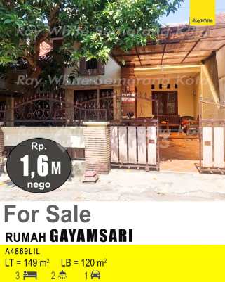 Kesempatan terbatas buat Anda dapatkan rumah strategis dengan return investasi tinggi di Gayamsari, Semarang. Rumah ini menawarkan kelengkapan fasilitas serta memiliki jumlah lantai 1 yang siap untuk segera Anda miliki, utamanya bagi Anda yang mencari hunian di lokasi yang terjangkau. Kondisi properti ini bagus dan memiliki desain indah yang menambah daya tarik dan estetika properti ini. Rumah ini berada di area yang mudah dijangkau. Detail Properti ini adalah: - Kamar Tidur: 3 - Kamar Mandi: 2 - Sertifikat: SHM - Sertifikat Hak Milik - Daya Listrik: 1300 watt - Kondisi Perabotan: Unfurnished Tersedia berbagai fasilitas lengkap, seperti: - Keamanan 24 jam. - Tempat Jemuran. Tidak hanya itu, namun properti ini juga memiliki keunggulan sebagai berikut: - Siap Huni. - Bisa KPR. - Sejuk. - Cocok Untuk Investasi. - Properti Bisa Nego. - Lokasi Strategis. Lokasi Strategis terletak di Gayamsari, properti ini memudahkan akses Anda ke fasilitas-fasilitas utama dan unggulan. Harga yang sangat kompetitif yaitu, Rp. 1.600.000.xxx, rumah ini siap menjadi milik Anda! Nikmati segala kemudahan dan berbagai keunggulan menarik saat properti berkualitas ini milik Anda.