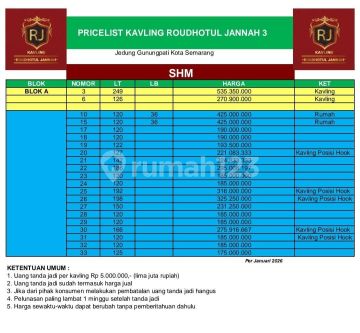 Tanah 1 lantai di Gunung Pati, Semarang. Dijual di wilayah yang asri. Dengan rinciannya adalah sebagai berikut: - Sertifikat: SHM - Sertifikat Hak Milik Dan properti ini juga pilihan tepat karena: - Lingkungan Islami. - Free Biaya Notaris. - Dekat Pusat Perbelanjaan. - Dekat Universitas. - Dekat Sekolah Negeri. - Dekat Fasilitas Kesehatan. - Dekat Tempat Ibadah. - Dekat Tempat Wisata. - Lokasi Pinggiran Kota. - Adem & Sejuk. - Lingkungan Tenang dan Damai. - Cocok Untuk Investasi. - Properti Bisa Nego. - Hitungan Tanah Kavling. Keberadaan tanah berikut strategis, hanya selangkah menuju berbagai fasilitas utama dan menarik. Dengan Rp. 175.000.xxx, anda bisa langsung dapatkan tanah istimewa di daerah Gunung Pati ini.