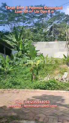 Dijual Tanah SHM Hak Milik di Patemon Dekat UNES Sekaran Gunungpati Semarang Selatan Informasi properti: + Tanah rata sudah siap bangun + Luas 131 m2 Lbr Dpn 8 m Hadap : Barat + Sertifikat SHM Fasilitas : + Sudah ada aliran listrik Lingkungan : + Dekat Perumahan, rumah kost mahasiswa UNES dan 2 menit Kampus UNES Sekaran Gunungpati Lokasi Terdekat : + Banyak Perumahan + Dekat Alfamart dan Indomaret + Dekat kantor Bank BRI, BCA, Mandiri, BTN, Jateng + Dekat Kampus Universitas Negeri Semarang ( UNES ) Lokasi dan Harga : + Patemon Sriging Dkt Kampus UNES Sekaran Gunungpati Semarang Selatan + Mulai Harga Rp 2,2 Juta / m2 + Hub Suyanto Terminalproperti