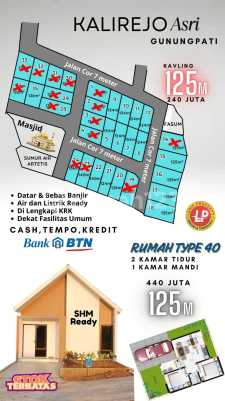 KAVLING SIAP BANGUN GUNUNGPATI . Kavling strategis di Gunungpati luas mulai 125m² harga mulai 240 juta. DP bisa 100 juta Sistem Pembayaran Cash, Tempo/Kredit GRATIS BIAYA NOTARIS, BPHTB & BALIK NAMA * SHM dan KRK tersedia. * Jalan cor 7m-8m. * Listrik dan air artetis tersedia. 3 menit ke Kampus 2 STIE Semarang Dekat jalan raya cuma 200m 6 menit ke wisata manasik haji Fatimah Zahra 7 menit ke Swalayan Goori 10 menit ke RS Cepoko 10 menit ke kampus Unnes Dekat TK, SD, SMP & SMA Kalirejo, Mangunsari, Gunungpati Info survey hub atika