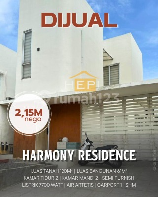 Dijual Rumah di Harmony Residence Jangli Semarang Luas Tanah 120m² Luas Bangunan 60m² Kamar Tidur 2 Kamar Mandi 2 Listrik 7700 watt Air Artetis Hadap Selatan Sertifikat HM CCTV Korden Onna Water heater (gas) Full smarthome system Harga 2,15 M nego