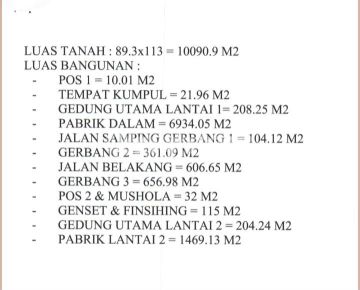 Pabrik Dijual Semarang Pabrik / Gudang strategis dekat Tol Krapyak & Kaliwungu di Kawasan Industri Wijayakusuma / KIW Semarang Sertifikat : SHGB LT/LB : 10.090,9m² / 7.000m² Dimensi : 89,3m x 113m Lokasi di Kawasan Infustri Wijayakusuma Selling point : Dekat Exit Yol Kaliwungu Dekat dengan Pabrik/Gudang al : - PT Elegant Wood (Elwood) - PT Country Form Furniture - PT Tujuh Bintang Jaya - PT Puninar Sarana Raya - PT Baja Bjntang - PT Simoplas - PT Sampang Asia Maju Abadi -PT Beton Perkasa Wijaksana - PT Gasundi Graha Abadi - PT AST Indonesia - PT APTIV COMPONENT Indonesia - PT Jaya Agritech - PT Norxel Teknologi Indonesia - PT Jumpwin Sports Indonesia - PT Fuling Food Packaging Indonesia - PT Uwinfly Indonesia Industry
