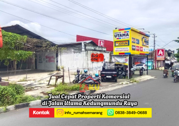 INVESTASI TERBAIK DI JALUR EMAS KEDUNGMUNDU RAYA! Dijual properti komersial sangat strategis, tepat di pinggir jalan raya utama Kedungmundu. Sangat cocok untuk kantor, showroom, kuliner, atau klinik. Spesifikasi Detail: Luas Tanah: 364 m² (Gabungan 2 Sertifikat: 148m² + 216m²) Luas Fisik: ± 390 m² Dimensi: 12.5 m x 32 m (Lebar depan sangat ideal untuk parkir/display) Legalitas: 2 Sertifikat Hak Milik (SHM) Lokasi: Jl. Raya Kedungmundu (Area padat bisnis & lalu lintas tinggi) Harga: 4 Milyar (Nego sampai deal!) Keunggulan: Fasum Strategis Pendidikan (Pusat Mahasiswa): Sangat dekat dengan Kampus UNIMUS (Universitas Muhammadiyah Semarang) dan UNKAHA. Kesehatan: Selangkah ke RS Unimus, Primaya Hospital, dan RSUD Wongsonegoro (RSWN). Belanja: Area komersial padat dengan Gaya Swalayan, Superindo, dan Java Supermall (10 menit). Akses: Jalur utama penghubung Tembalang - Pusat Kota - Pedurungan. Dekat Pintu Tol Gayamsari. Karakter Lokasi: Bebas banjir, high traffic (lalu lintas padat 24 jam), dan area perbankan/kuliner. Hubungi : Lala Pro
