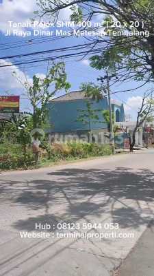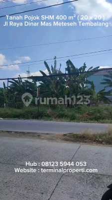 Dijual Tanah Pojok ( 20 x 20 ) di Jl Raya Dinar Mas Kel Meteseh Tembalang Semarang Timur Informasi properti: + Tanah Pojok berbentuk bagus + Luas Tanah : 400 m2 Lbr Depan : 20 m dan 20 m Hadap : Selatan dan Timur + Sertifikat SHGB Fasilitas : + Sudah ada aliran listrik Lingkungan : + Perumahan, perkantoran + Jalan 15 meter cor Lokasi Terdekat : + RSUD Wongso Negoro Ketileng, RS UNIMUS, RS Primaya + Dekat Kampus UNDIP. UNIMUS, Karya Husada + Dekat Bank BCA, Bank BRI, Bank Mandiri, BTN Lokasi dan Harga : + Jl Raya Boulevard Dinar Mas Kel Meteseh Kec Tembalang Kota Semarang + Harga Rp 3,75 Juta / m2 + Hub Suyanto Terminalproperti