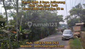 Dijual Tanah Hak Milik di Jl Raya Jatibarang Sblh Cafe Kopi Tjarik Jatibarang Kec Mijen Kota semarang Spesifikasi: + Tanah bagus 1380 m2 lebar depan : 22 m Hadap : Timur + Sertifikasi: SHM Kondisi: + Jalan bagus aspal 10 m + Tananam Sengon Lingkungan : + Sebelah Cafe Kopi Tjarik + Jalur Ramai + Cocok Untuk usaha dan investasi Lokasi: + Jl Raya Jatibarang Sblh Kopi Tjarik Kelurahan Jatibarang Kec Mijen Kota Semarang + Harga Rp 1,45 Juta / m2 + Hub Suyanto terminalproperti
