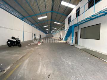 Disewakan gudang Gatsu siap pakai bebas banjir dekat exit tol akses kontainer, wing box, trailer luas tanah 2.400 meter luas bangunan 2.120 meter lebar depan 20 meter cocok untuk gudang simpan barang
