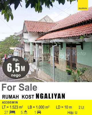Kost di Ngaliyan. prospekting utk kos2an karyawan kawasan industri candi jarak 1KM, mahasiswa UIN jarak 2KM dan masih banyak lagi karyawan swalayan dan restoran, 75 m jalan raya ngaliyan dan pasar ngaliyan, 100m kantor kecamatan, berhadapan dg puskesmas ngaliyan, jalan lebar leluasa simpangan mobil. Bentuk tanah ngantong, lebar depan 12m. Strategis, bangunan kokoh bs di up grade atau renovasi sesuai keinginan. Cek segera kost 2 lantai yang modern ini, dijual menghadirkan lingkungan fasilitas yang lengkap, cocok untuk Anda yang menginginkan hunian aman. Spesifikasi Utama Properti: - Kamar Tidur: 27 - Kamar Mandi: 5 - Sertifikat: SHM - Sertifikat Hak Milik Fitur unggulan: - Bisa KPR. - Siap Huni. - Bebas Banjir. - Dekat Pusat Perbelanjaan. - Sejuk. - Cocok Untuk Investasi. - Properti Bisa Nego. - Lokasi Strategis. Terletak di Ngaliyan, kost ini memberikan kemudahan akses ke berbagai fasilitas menarik. Dengan harga Rp. 6.500.000.xxx, anda bisa memiliki hunian premium yang sudah siap huni dan bersertifikat SHM - Sertifikat Hak Milik. Ambil kesempatan untuk menikmati pengalaman tinggal di kawasan Ngaliyan yang nyaman ini! Hubungi segera untuk informasi lebih lanjut!