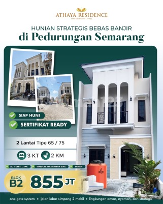 CLUSTER ATHAYA RESIDENCE Cluster Premium Berlokasi di Tengah Kota Semarang Jalan Turangga Timur, Pedurungan. 1 UNIT TERAKHIR ! - Rumah 2 Lantai | Blok B2 - Tipe 67 m² - Luas Tanah 75 m² - 3 Kamar Tidur - 2 Kamar Mandi - Ruang Tamu - Ruang Keluarga - Dapur - Carport Mobil >> Harga 855 Juta √ Sertifikat Ready KEUNGGULAN : - One Gate System - Jalan lebar bisa simpangan 2 mobil - Lokasi Strategis cocok untuk hunian maupun investasi - Lingkungan aman dan nyaman STRATEGIS : - Dekat jalan raya utama pedurungan - 1 menit ke Alfamart - 2 menit ke TK SD SMP Sang Timur - 4 menit ke Pizza Hut pedurungan - 5 menit ke ADA Swalayan Majapahit - 5 menit ke ADA Swalayan Fatmawati - 7 menit ke Hotel Horison Nindya - 7 menit ke Nasmoco Majapahit - 8 menit ke GOR Manunggal jati - 8 menit ke Kolam renang Taman sari Majapahit - 10 menit ke Transmart Majapahit BONUS : - 1 Unit AC 1/2 pk - Tandon atas dan bawah 500 liter - Taman cantik Info Detail dan uang tanda jadi Hubungi :