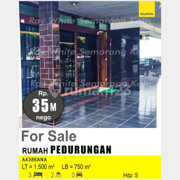 Kesempatan terbatas buat Anda dapatkan rumah nyaman dengan return investasi tinggi di Pedurungan, Semarang. Rumah ini menawarkan kelengkapan fasilitas serta memiliki nilai tepat yang siap untuk segera Anda miliki, utamanya bagi Anda yang mencari hunian sekaligus kantor di lokasi yang dekat dengan fasilitas umum. Kondisi properti ini bagus dan memiliki desain modern yang menambah daya tarik dan estetika properti ini. Rumah ini berada di area yang mudah dijangkau. Detail Properti ini adalah: - Kamar Tidur: 3 - Kamar Mandi: 2 - Sertifikat: SHM - Sertifikat Hak Milik - Kondisi Perabotan: Unfurnished Tidak hanya itu, namun properti ini juga memiliki keunggulan sebagai berikut: - Bisa KPR. - Siap Huni. - Bebas Banjir. - Dekat Pusat Perbelanjaan. - Dekat Fasilitas Kesehatan. - Dekat Universitas. - Dekat Sekolah Negeri. - Dekat Tempat Ibadah. Lokasi Strategis terletak di Pedurungan, properti ini memudahkan akses Anda ke fasilitas-fasilitas utama dan unggulan. Harga yang sangat kompetitif yaitu, Rp. 35.000.000.xxx, rumah ini siap menjadi milik Anda! Nikmati segala kemudahan dan berbagai keunggulan menarik saat properti premium ini milik Anda.
