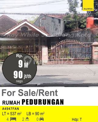 Kesempatan terbatas buat Anda dapatkan rumah nyaman dengan return investasi tinggi di Pedurungan, Semarang. Rumah ini menawarkan lokasi yang strategis serta memiliki jumlah lantai 1 yang siap untuk segera Anda miliki, utamanya bagi Anda yang mencari hunian di lokasi yang terjangkau. Kondisi properti ini bagus dan memiliki desain modern yang menambah daya tarik dan estetika properti ini. Rumah ini berada di area strategis. Detail Properti ini adalah: - Kamar Tidur: 4 - Kamar Mandi: 2 - Sertifikat: SHM - Sertifikat Hak Milik - Daya Listrik: 2200 watt - Arah Bangunan: Menghadap Timur - Kondisi Perabotan: Unfurnished - Harga Jual : 9M nego Tersedia berbagai fasilitas lengkap, seperti: - Keamanan 24 jam. - Tempat Jemuran. Tidak hanya itu, namun properti ini juga memiliki keunggulan sebagai berikut: - Siap Huni. - Bisa KPR. - Sejuk. - Cocok Untuk Investasi. - Properti Bisa Nego. - Lokasi Strategis. Lokasi Strategis terletak di Pedurungan, properti ini memudahkan akses Anda ke fasilitas-fasilitas utama dan unggulan. Harga yang sangat kompetitif yaitu, Rp. 90.000.000/m2, rumah ini siap menjadi milik Anda! Nikmati segala kemudahan dan berbagai keunggulan menarik saat properti eksklusif ini milik Anda.
