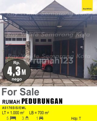 Kesempatan terbatas buat Anda dapatkan rumah nyaman dengan return investasi tinggi di Pedurungan, Semarang. Rumah ini menawarkan lokasi yang strategis serta memiliki jumlah lantai 1 yang siap untuk segera Anda miliki, utamanya bagi Anda yang mencari hunian di lokasi yang terjangkau. Kondisi properti ini bagus dan memiliki desain modern yang menambah daya tarik dan estetika properti ini. Rumah ini berada di wilayah yang mudah dijangkau. Detail Properti ini adalah: - Kamar Tidur: 5 - Kamar Mandi: 3 - Sertifikat: SHM - Sertifikat Hak Milik - Daya Listrik: 3500 watt - Arah Bangunan: Menghadap Timur - Kondisi Perabotan: Unfurnished Tersedia berbagai fasilitas lengkap, seperti: - Keamanan 24 jam. - Tempat Jemuran. Tidak hanya itu, namun properti ini juga memiliki keunggulan sebagai berikut: - Bisa KPR. - Siap Huni. - Bebas Banjir. - Sejuk. - Cocok Untuk Investasi. - Properti Bisa Nego. - Lokasi Strategis. Lokasi Strategis terletak di Pedurungan, properti ini memudahkan akses Anda ke fasilitas-fasilitas utama dan unggulan. Harga yang sangat kompetitif yaitu, Rp. 4.300.000.xxx, rumah ini siap menjadi milik Anda! Nikmati segala kemudahan dan berbagai keunggulan menarik saat properti premium ini milik Anda.