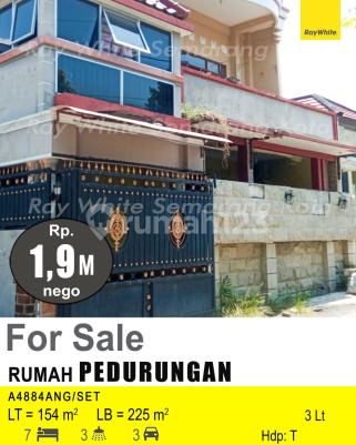 Rumah di Pedurungan. Miliki rumah 3 lantai yang modern ini, dijual dengan pemandangan asri yang menambah nilai estetika di lingkungan hunian. Rumah ini berada di wilayah strategis serta menghadirkan lingkungan fasilitas yang lengkap, cocok untuk Anda yang menginginkan hunian strategis. Spesifikasi Utama Properti: - Kamar Tidur: 7 - Kamar Mandi: 3 - Sertifikat: HGB - Hak Guna Bangunan - Daya Listrik: 3300 W - Arah Bangunan: Menghadap Timur - Kondisi Perabotan: Unfurnished Dilengkapi dengan: - Keamanan 24 jam. - Tempat Jemuran. Fitur unggulan: - Siap Huni. - Bisa KPR. - Bebas Banjir. - Sejuk. - Cocok Untuk Investasi. - Properti Bisa Nego. - Lokasi Strategis. Berlokasi di Pedurungan, rumah ini memberikan kemudahan akses ke berbagai fasilitas menarik. Dengan harga Rp. 1.900.000.xxx, anda bisa memiliki hunian eksklusif yang sudah siap huni dan bersertifikat HGB - Hak Guna Bangunan. Ambil kesempatan untuk menikmati pengalaman tinggal di kawasan Pedurungan yang nyaman ini! Kontak segera untuk informasi lebih lanjut!