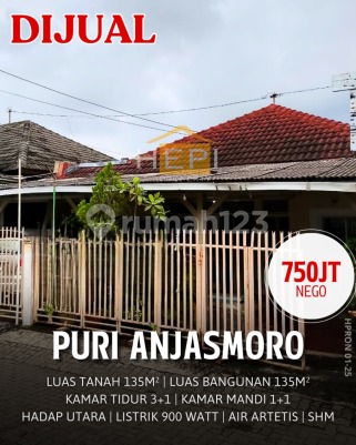 Dijual Rumah Masih Bagus Puri Anjasmoro Semarang Barat Plafon setinggi 4 meter Semi furnished Jalan sudah tinggi Luas Tanah 98m² Luas Bangunan 120m² 1,5 Lantai Sertifikat Hak Milik 2+1 Kamar Tidur 2+1 kamar mandi Air PDAM Listrik 2200 watt Tandon air Harga 750 juta