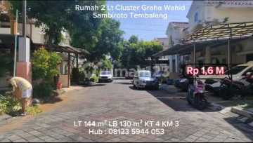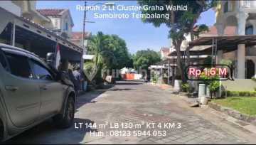 Dijual Rumah 2 Lantai Bagus di Perum Graha Wahid Kel Sambiroto kec Tembalang Semarang Spesifikasi: - Luas bangunan : 130 m2 Hadap : Utara - Luas Tanah: 144 m2 - Kamar Tidur: 4 - Kamar Mandi: 3 - Dapur bersih - Ruang Cuci, ruang seterika, - Carport dan garasi - Ruang tamu, Ruang Keluarga, ruang makan, ruang santai di samping - Listrik: 2.200 watt - Air Artetis - Tandon air - Ada Taman, - Sertifikasi: SHM Kondisi: - Bangunan Bagus - Jalan lebar 10 meter paving Lingkungan; - Aman, nyaman, bebas banjir - Cocok untuk tempat tinggal dan investasi Lokasi: - Perum Cluster Graha Wahid Kel Sambiroto Kec Tembalang Kota Semarang - Harga Rp 1,6 Milyar - Hub Suyanto Terminalproperti