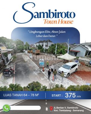 SAMBIROTO TOWN HOUSE Lokasi Sambiroto, Tembalang - Kota Semarang Eksklusif hanya 4 unit Harga Promo Awal Tahun 2 lantai : ● Kav 1 - SOLD ● Kav 2 Tipe 80/78 Hanya 775 Juta cash Tanpa Garasi - 720 juta 1 lantai : Kav 3 Tipe 45/70 Hanya 510 Juta cash Kav 4 Tipe 37/64 Hanya 375 Juta cash Keunggulan lokasi : Hanya 500 meter an dari Jl Sambiroto Raya Dekat Kampus Univ. Karya Husada Dekat McD & Swalayan Aneka Jaya Dekat Spbu, KFC & Swalayan GAIA Dekat RS Primaya, Kampus & RS UNIMUS Akses mobil lancar dan bebas banjir Sertifikat SHM Survey hubungi no yg tertera.