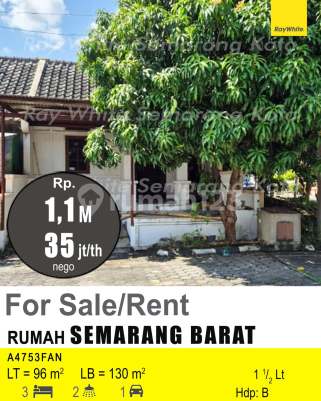 Rumah di Semarang Barat. Temukan rumah 1 lantai yang nyaman ini, dijual dengan pemandangan asri yang menambah nilai estetika di lingkungan hunian. Rumah ini berada di wilayah yang mudah dijangkau serta menghadirkan lingkungan fasilitas yang lengkap, cocok untuk Anda yang menginginkan hunian aman. Spesifikasi Utama Properti: - Kamar Tidur: 3 - Kamar Mandi: 2 - Sertifikat: SHM - Sertifikat Hak Milik - Daya Listrik: 2200 W - Arah Bangunan: Menghadap Barat - Kondisi Perabotan: Unfurnished Dilengkapi dengan: - Akses Parkir. Fitur unggulan: - Siap Huni. Terletak di Semarang Barat, rumah ini memberikan kemudahan akses ke berbagai fasilitas menarik. Dengan harga Rp. 1.000.000.xxx, anda bisa memiliki hunian terbaik yang sudah siap huni dan bersertifikat SHM - Sertifikat Hak Milik. Manfaatkan kesempatan untuk menikmati pengalaman tinggal di kawasan Semarang Barat yang nyaman ini! Hubungi segera untuk informasi lebih lanjut!
