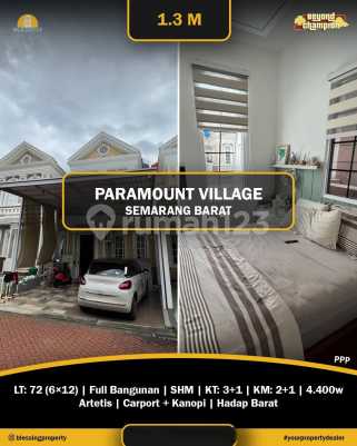 Rumah Nyaman Siap Pakai di Paramount Village Semarang Barat LT 72 LB 72 SHM KT 3+1 KM 2+1 4400w Artetis Carport + Kanopi Hadap Barat Universitas Universitas Dian Nuswantoro (UDINUS) - 15 menit (6 km) Universitas Diponegoro (UNDIP) Pleburan - 20 menit (7 km) Universitas Negeri Semarang (UNNES) - 25 menit (9 km) BINUS University Semarang - 25 menit (10 km) Akses Tol Gerbang Tol Krapyak - 10 menit (4 km) Gerbang Tol Manyaran - 15 menit (6 km) Gerbang Tol Kalikangkung - 20 menit (10 km) Pusat Perbelanjaan The Park Mall Semarang - 8 menit (3 km) DP Mall Semarang - 15 menit (6 km) Paragon City Mall - 15 menit (6 km) Queen City Mall - 18 menit (7 km) Transportasi Bandara Internasional Jenderal Ahmad Yani - 10 menit (4 km) Pelabuhan Tanjung Emas - 15 menit (6 km) Stasiun Poncol Semarang - 12 menit (5 km)