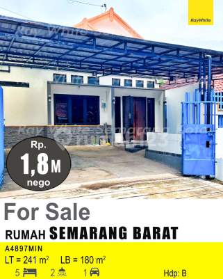 Kesempatan terbatas buat Anda dapatkan rumah strategis dengan return investasi tinggi di Semarang Barat, Semarang. Rumah ini menawarkan lokasi yang strategis serta memiliki nilai tepat yang siap untuk segera Anda miliki, utamanya bagi Anda yang mencari hunian di lokasi yang dekat dengan fasilitas umum. Kondisi properti ini bagus dan memiliki desain indah yang menambah daya tarik dan estetika properti ini. Rumah ini berada di area yang mudah dijangkau. Detail Properti ini adalah: - Kamar Tidur: 5 - Kamar Mandi: 2 - Sertifikat: SHM - Sertifikat Hak Milik - Daya Listrik: 5500 watt - Arah Bangunan: Menghadap Barat - Kondisi Perabotan: Unfurnished Tersedia berbagai fasilitas lengkap, seperti: - Keamanan 24 jam. - Tempat Jemuran. Tidak hanya itu, namun properti ini juga memiliki keunggulan sebagai berikut: - Siap Huni. - Bisa KPR. - Bebas Banjir. - Sejuk. - Cocok Untuk Investasi. - Properti Bisa Nego. - Lokasi Strategis. Lokasi Strategis terletak di Semarang Barat, properti ini memudahkan akses Anda ke fasilitas-fasilitas utama dan unggulan. Harga yang sangat kompetitif yaitu, Rp. 1.800.000.xxx, rumah ini siap menjadi milik Anda! Nikmati segala kemudahan dan berbagai keunggulan menarik saat properti berkualitas ini milik Anda.