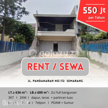 Disewakan Ruang Usaha di Jl Pandanaran, Semarang Tengah Luas Tanah: 636m2 Luas Bangunan: 600m2 Lantai: 2 Kamar Tidur: 3 Kamar Mandi: 2 Dapur: 1 Listrik: 11.000 watt Air: Pam&Sumur Garasi: Terbuka #Unfurnished