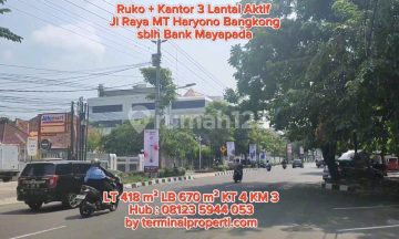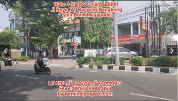 Dijual Gedung dan Ruko 3 Lantai Hak Milik Jl Raya MT Haryono Bangkong Kel Wonodri Kec Semarang Selatan Spesifikasi: + Luas bangunan : 670 m2 Hadap : Timur + Lantai I : Toko, Gudang, Dapur dan Toilet ( 1 ) + Lantai II : Ruang Kosong dan Toilet ( 2 ) + Lantai III : Kamar Tidur ( 4 ) Toilet ( 2 ) + Ada IMB + Luas Tanah: 418 m2 ( Fisiknya 500 m2 ) + Lantai Keramik + Carport 6 mobil + Listrik: 11000 watt ( tiap lantai 1 pas ) + Air PDAM dan Artetis + Sertifikasi: SHM Lingkungan : + Perkantoran, Pertokoan dn Pergudangan + Jalan 15 meter aspal Lokasi Terdekat : + Dekat Bank BCA, Bank Mandiri, Bank OCBC NISP, Bank BTN, Bank BTPN dll + Dekat Exit TOL Gayamsari + Dekat Simpanglima + Dekat Kampus UNDIP Pleburan Lokasi dan : + Jalan MT Haryono Bangkong Dkt BCA Kel Wonodri Kec Semarang Selatan Kota Semarang Kota Semarang + Harga Rp 16 Milyar + Hub Suyanto Terminalproperti