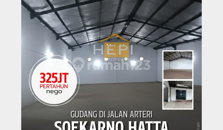 Disewakan Gudang 2in1 Arteri Sukarno Hatta Pedurungan Semarang Luas tanah 1100m² Luas bangunan 800m² terdiri : Gudang kecil 200m² Gudang Besar 600m² Bentuk ngantong, lebar depan 12 mtr Harga 325 juta/tahun (NEGO) Kondisi siap pakai minimal 2 tahun * Notaris dtanggung pemilik * PBB ditanggung penyewa * pajak sewa ditanggung penyewa