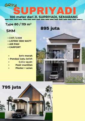 RUMAH STRATEGIS DEKAT PUSAT KERAMAIAN **PESAN BANGUN** KEUNTUNGANNYA : Denah ruangan bisa request sesuai yang diinginkan Lokasi di Supriyadi, depan SMPN 15, SEMARANG 100 meter dari jalan raya Supriyadi. Tersedia Bangunan : 1 lantai dan 2 lantai LT. 119 m² LB. 80 m² SHM 3 KT 2 KM Ruang tamu Ruang keluarga Listrik 1300 watt Dapur PDAM + tandon Akses jalan mobil simpangan Doubel carport Hadap utara Keunggulan : 5 menit ke exit tol Gayamsari 5 menit ke swalayan ADA 5 menit ke kampus AMNI dan USM 10 menit ke simpang 5 10 menit ke terminal penggaron 15 menit ke stasiun Tawang dan Poncol 15 menit ke kampus UNIMUS HARGA ; - 1 lantai 795 juta - 2 lantai 895 juta