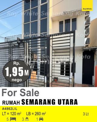 Rumah di Semarang Utara. Cek segera rumah 3 lantai yang nyaman ini, dijual dengan pemandangan asri yang menambah nilai estetika di lingkungan hunian. Rumah ini berada di wilayah strategis serta menghadirkan lingkungan fasilitas yang lengkap, cocok untuk Anda yang menginginkan hunian aman. Spesifikasi Utama Properti: - Kamar Tidur: 5 - Kamar Mandi: 3 - Sertifikat: SHM - Sertifikat Hak Milik - Daya Listrik: 11000 W - Kondisi Perabotan: Unfurnished Dilengkapi dengan: - Keamanan 24 jam. - Tempat Jemuran. Fitur unggulan: - Bisa KPR. - Siap Huni. - Bebas Banjir. - Sejuk. - Cocok Untuk Investasi. - Properti Bisa Nego. - Lokasi Strategis. Berlokasi di Semarang Utara, rumah ini memberikan kemudahan akses ke berbagai fasilitas menarik. Dengan harga Rp. 1.950.000.xxx, anda bisa memiliki hunian premium yang sudah siap huni dan bersertifikat SHM - Sertifikat Hak Milik. Jangan lewatkan kesempatan untuk menikmati pengalaman tinggal di kawasan Semarang Utara yang nyaman ini! Kontak segera untuk informasi lebih lanjut!