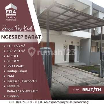 Rumah 2 lantai di Tembalang, Semarang. For rent rumah di wilayah yang asri. Properti 2 lantai ini berada di lingkungan yang mudah dijangkau. Spesifikasinya adalah sebagai berikut: - Kamar Tidur: 4 - Kamar Mandi: 3 - Sertifikat: SHM - Sertifikat Hak Milik - Kondisi Perabotan: Furnished Tidak hanya itu, properti ini layak untuk anda dapatkan karena: - Bebas Banjir. - Siap Huni. Keberadaan rumah berikut terjangkau, hanya selangkah menuju berbagai fasilitas utama dan menarik. Hanya Rp. 95Jt/Th, anda dapat langsung dapatkan rumah istimewa di daerah Tembalang ini.