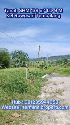 Dijual Tanah SHM Hak Milik di Rowosari Kec Tembalang Semarang Timur Spesifikasi + Luas Tanah : 138 m2 Lbr Dpn: 9 m Hadap : Barat + Air Artetis + Sertifikasi: SHM Kondisi: + Tanah Datar + Jalan 5 mtr + Kawasan Pemukiman + Cocok untuk rumah dan investasi Lokasi Terdekat : + RSUD Wongso Negoro Ketileng, RS UNIMUS, RS Primaya + Dekat Kampus UNDIP. UNIMUS, Karya Husada + Dekat Bank BCA, Bank BRI, Bank Mandiri, BTN Lokasi: + Rowosari Kec Tembalang Semarang Timur + Harga Rp 190 Juta + Hub Suyanto Terminalproperti