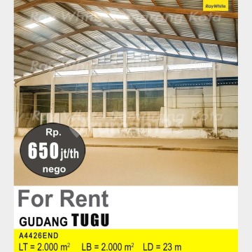 Gudang luas siap pakai di Urip Sumoharjo Tugu, Semarang. For rent di wilayah yang tenang. Dengan kategorinya adalah sebagai berikut: - LT: 2000 - LB: 2000 - L.Depan: 23 meter - Kamar Mandi: 1 - Sertifikat: HGB - Hak Guna Bangunan - Daya Listrik: 53000 W - Kondisi Perabotan: Unfurnished Dan properti ini juga unggul karena: - Siap Huni. - Bebas Banjir. - Dekat Akses Bus Kota. - Dekat Pusat Perbelanjaan. - Dekat Sekolah Negeri. - Dekat Tempat Wisata. - Dekat Fasilitas Kesehatan. - Dekat Tempat Ibadah. - Dekat Taman Kota. Keberadaan gudang berikut strategis, hanya selangkah menuju berbagai fasilitas utama dan menarik. Dengan Rp. 650.000.xxx nego, anda bisa langsung dapatkan gudang eksklusif di daerah Tugu ini. Tersedia juga untuk rental period Yearly.