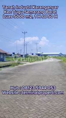 Dijual Tanah Zona Industri 5000 m2 s.d 400 Hektar Dkt Kawasan Wijaya Kusuma Jl Raya Pantura Karanganyar Kec Tugu Semarang Barat Informasi properti: + Tanah rata + Luas Tanah : 5000 m2, 1 Ha, 2 H, 5 H, 10 H, 25 H s.d 400 H Lbr Depan : 50 m, 100 m, 150 m, 200 m, 300 m + Sertifikat SHGB Fasilitas : + Sudah ada aliran listrik 3 pas Lingkungan : + Kawasan Industri Wijaya Kusuma + Jalan 30 meter paving Lokasi Terdekat : + Dekat Pantura dan Exit TOL Krapyak dan Exit TOL Kalikangkung + Dekat Pasar Mangkang, Alfamart dan Indomaret, Aneka Jaya + Dekat kantor Bank BRI, BCA, Mandiri. + Dekat Kampus UIN Walisongo, SMAN 8, SMPN 18 Lokasi dan Harga : + Kawasan Industri dkt kawasan Industri Wijaya kusuma Dekat Jln Raya Pantura Tugurejo Kec Tugu Kota Semarang + Harga 2 Juta / m2 + Hub Suyanto Terminalproperti