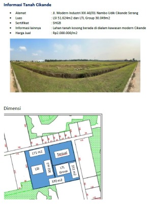 DI JUAL TANAH - Lokasi Kawasan Industri Modern Cikande Serang Banten - Luas tanah 81.673 m² - Lebar depan 171 meter - Bebas banjir - Akses kontainer - Tanah pada siap bangun - Zonasi industri - Surat HGB - Harga 2.2 juta / m²