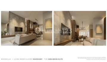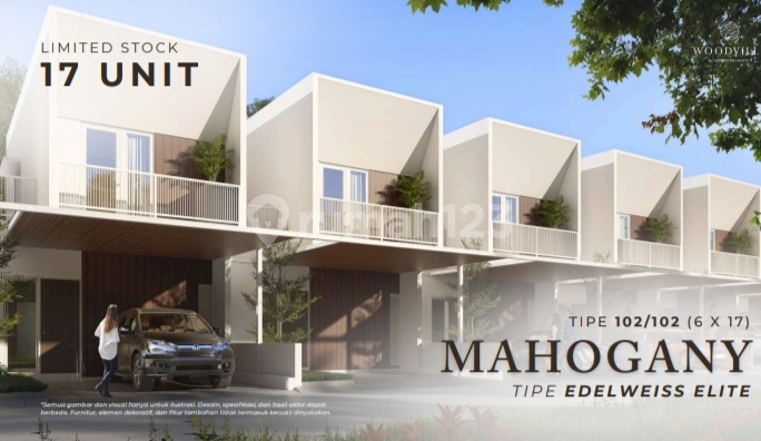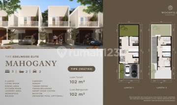 Rumah Baru Gress Type Mahogany Perumahan Woodville Residence luas tanah 102/lb 102 3kt 2km harga 1,25M harga termasuk smart home system, kanopi, taman depan dan free IPL 2 tahun. limited unit hanya 17 unit saja