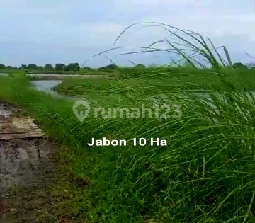 Tanah Di Jual Murah di kawasan industri Jabon Sidoarjo Posisi tanah berada di nol jalan raya Bisa dilewati kontainer Dekat tol Gempol Bertetangga dengan komplek industri Maspion Ada pipa gas dan sungai Ada PDAM dan pembangkit listrik Cocok untuk pabrik besar HARGA MURAH 275rb/m2 Tanah Zona Merah Masih Berupa Tambak Full SHM 1 Pemilik Luas 9,6 Ha (96.000m²) Lebar Depan 200 Meter. Bentuk Tanah Sesuai Foto