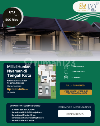 Kesempatan terbatas buat Anda dapatkan rumah strategis dengan return investasi tinggi di Krian, Sidoarjo. Rumah ini menawarkan kelengkapan fasilitas serta memiliki jumlah lantai 1 yang siap untuk segera Anda miliki, utamanya bagi Anda yang mencari hunian di lokasi yang dekat dengan fasilitas umum. Kondisi properti ini bagus dan memiliki desain indah yang menambah daya tarik dan estetika properti ini. Rumah ini berada di wilayah yang mudah dijangkau. Detail Properti ini adalah: - Kamar Tidur: 3 - Kamar Mandi: 2 - Sertifikat: HGB - Hak Guna Bangunan - Arah Bangunan: Menghadap Selatan - Kondisi Perabotan: Furnished Tersedia berbagai fasilitas lengkap, seperti: - Keamanan 24 jam. - Masjid. - One Gate System. - Taman. - Taman. Tidak hanya itu, namun properti ini juga memiliki keunggulan sebagai berikut: - Bonus Canopy. - Full Furnished. - Bonus Furniture. - Siap Huni. - Free BPHTB. - Dekat Akses Bus Kota. - Dekat Fasilitas Kesehatan. Lokasi Strategis terletak di Krian, properti ini memudahkan akses Anda ke fasilitas-fasilitas utama dan unggulan. Harga yang sangat kompetitif yaitu, Rp. 500.000.xxx, rumah ini siap menjadi milik Anda! Nikmati segala kemudahan dan berbagai keunggulan menarik saat properti asri ini milik Anda.