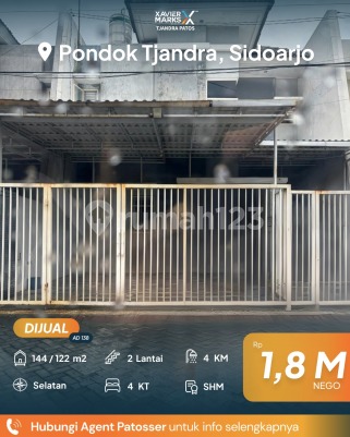 Dijual rumah second Pondok tjandra LT : 144m2 (9x16) LB : 122 m2 ( sdh renov) Kt : 4 Km : 4. 1 kmr mandi dlm kamar utama Listrik : 4400W PDAM Selatan SHM Harga : 1.80M nego Hub Andrea - 0822xxxxxxxx XMTP Pondok Tjandra dekat dengan Gerbang Tol Juanda, Gerbang Tol Tambak Sumur, Bandara Internasional Juanda, Stasiun Waru, Stasiun Sidoarjo, RS Mitra Keluarga, RS Bunda, RSIA Prima Husada, Sekolah Petra Acitya, SMAN 1 Waru, Singapore National Academy, Universitas UPN Veteran Jawa Timur, UIN Sunan Ampel Kampus 2, Universitas Sunan Giri, Universitas Kristen Petra, Politeknik Pelayaran, ITS, Superindo, Galaxy Mall, City of Tomorrow, Pondok Tjandra Indah Sports Club, clubhouse, area bisnis dan community, kafe, ATM center, serta berbagai pusat kuliner dan fasilitas umum lain di sekitar Waru dan Sidoarjo.
