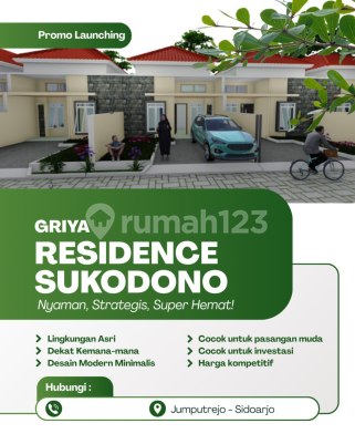 GRIYA RESIDENCE SUKODONO Hunian Nyaman, Lokasi Strategis, Harga Super Hemat Tipe 36/60 (6x10) 2 Kamar Tidur 1 Kamar Mandi Dapur Carport Promo Cash Cuma Rp 325 Juta (Dari harga normal Rp 462 Juta) FREE: Tandon Atas Canopy Belakang Air PDAM Peningkatan SHM Ketentuan Harga belum termasuk biaya surat-surat UTJ Rp 5 Juta (langsung mengurangi harga) Pelunasan maksimal H+7 setelah UTJ STU 6bln Terbit SHM Lokasi Strategis & Mudah Akses Dekat ke Buduran, Gedangan, dan Surabaya Lingkungan nyaman, fasilitas umum lengkap, cocok untuk tempat tinggal maupun investasi masa depan Unit terbatas Yuk amankan rumah impianmu sekarang sebelum kehabisan Hubungi YuLi ya Griya Residence Sukodono - Rumah Nyata, Harga Bersahabat