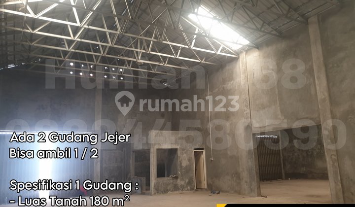 DIJUAL / DISEWAKAN GUDANG Tambak Sawah, Sidoarjo Ada 2 Gudang Jejer Bisa ambil 1 / 2 Spesifikasi 1 Gudang : - Luas Tanah 180 m² - Luas Bangunan 180 m² - Ukuran 10 x 18 - Ada Kantor 3 x 3 - Kamar Mandi 1 - Sewa 50 juta / tahun - Jual 1.5 M