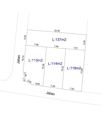 Rumah Siap Bangun Limasan Dijual Jogja Gamol Balecatur Gamping Sleman Yogyakarta 4 unit Kavling siap bangun, dalam lingkungan pemukiman penduduk di Sleman Barat Gamping Sleman Jogjakarta. 4 Kavling lahan siap bangun dengan luasan lahan : 114m² 115m² 118m² 137m² Selling Point : (1,4 km) Utara Perumahan Citra Grand Mutiara Gamping Sleman Jogjakarta (1,5 km) RS Mitra Sehat Gamol Balecatur Gamping Sleman Jogjakarta (1,7 km) Perumahan Green Kuantan Residence Gamping Sleman Jogjakarta (2,8 km) SPBU Pertamina Ambarketawang Gamping Sleman Jogjakarta (6 menit) Kampus Universitas Mercu Buana Jl. Raya Wates Yogyakarta (6 menit) RSU PKU Muhammadiyah Gamping Sleman Jogjakarta (7 menit) SD-SMP-SMA Kesatuan Bangsa Yogyakarta (9 menit) Kampus (UMY) Universitas Muhammadiyah Yogyakarta (13 menit) menuju Jl. RE Martadinata Kota Jogjakarta Spesifikasi : Luas Tanah : 114 - 132m² Luas Bangunan : 60m² Lebar Depan : 7,5 meter Kamar Tidur : 3 Kamar Mandi : 2 Teras Taman Depan R. Terbuka R. Tamu R. Keluarga R. Makan Dapur Tempat cuci + Jemuran Air Sumur Listrik 1300W Carpot Hadap Selatan Akses jalan seukuran 2 mobil SHM PBG / IMB